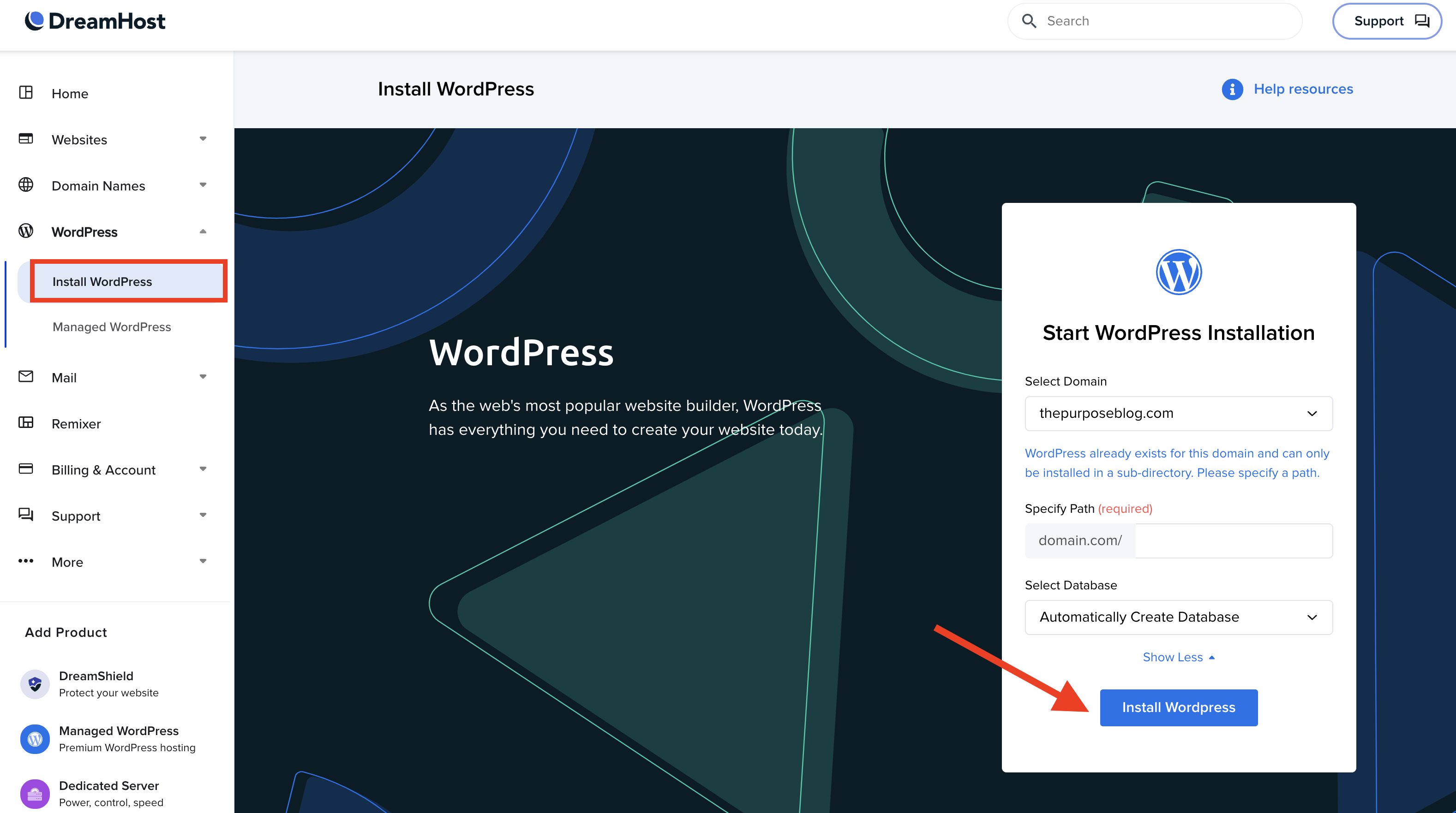 Once you’ve signed up for a Dreamhost plan, installing WordPress is a breeze!