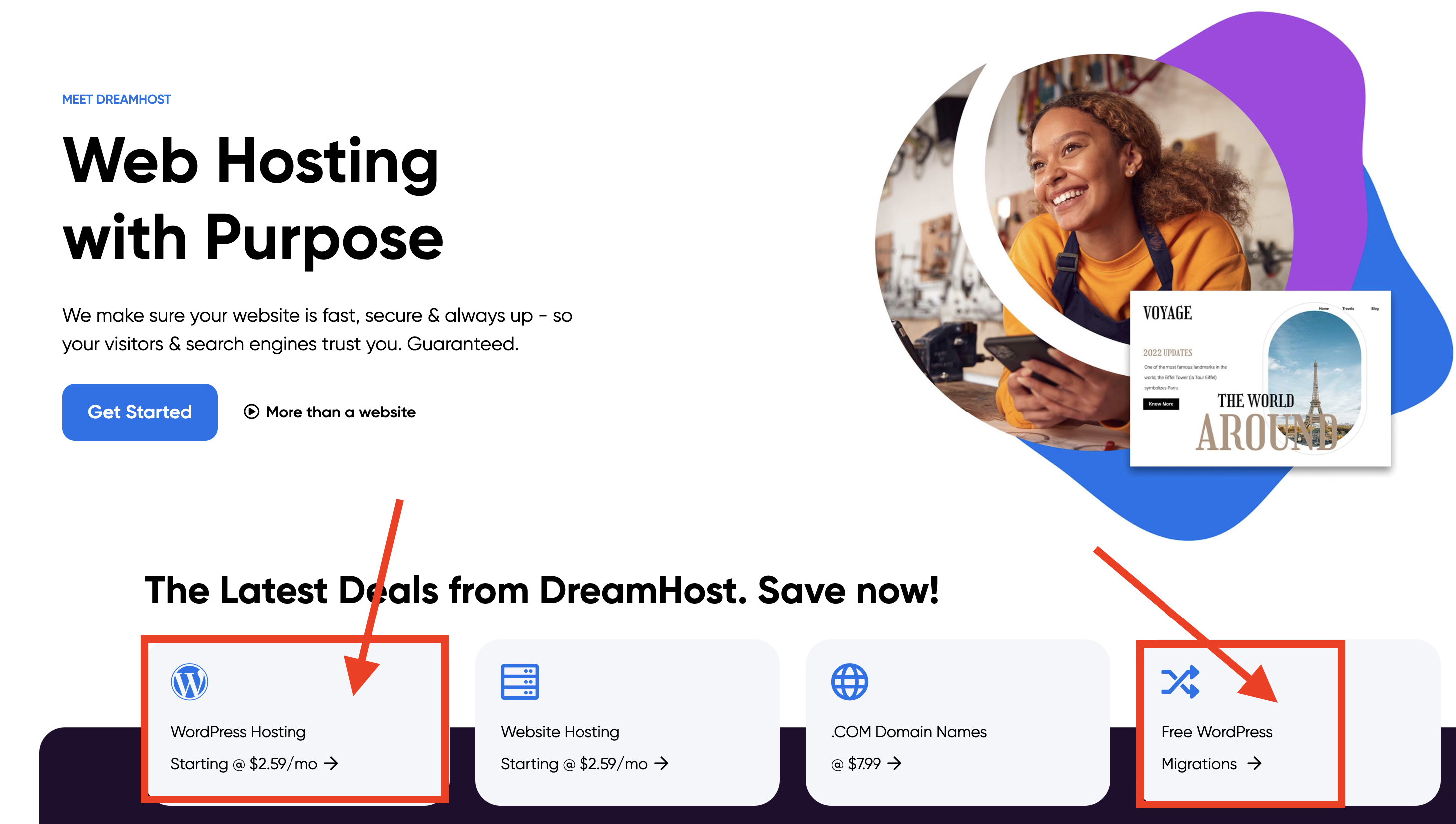 1. Sign up for a Dreamhost plan starting at $2.59/month