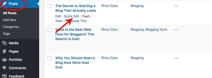 - On your old blog’s WordPress dashboard, manually place the posts you want to migrate under a unique category.