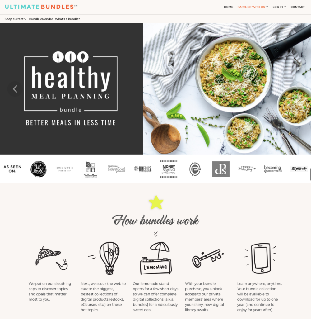 Ultimate Bundles is in the business of digital products and education. They create digital bundles on various lifestyle and business topics like blogging, photography, arts & crafts, homemaking, essential oils, personal finance, travel, health and wellness, and more. Each themed bundle is packed with top-quality ebooks, online courses, and printables, usually valued at thousands of dollars but sold at over 90% discount.